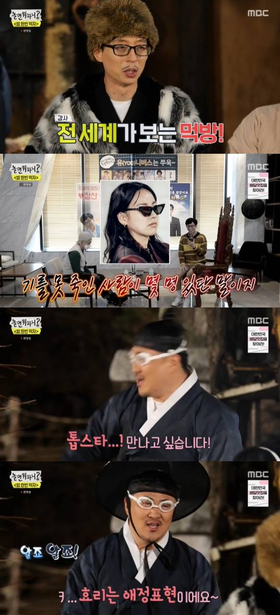 23일 방송된 MBC '놀면 뭐하니?'에서는 '밥 한번 먹자' 특집으로 꾸며진 가운데 유재석, 데프콘, 김종민이 라이브 방송을 통해 '먹방'을 진행한 장면이 전파를 탔다.