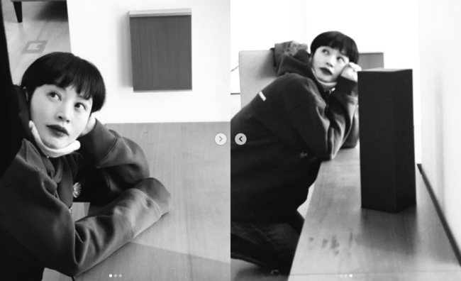 김혜수는 23일 오후 자신의 인스타그램 계정에 “#째려보는거아님 #그림설명듣는중”라는 해시태그 메시지를 적어 올렸다.