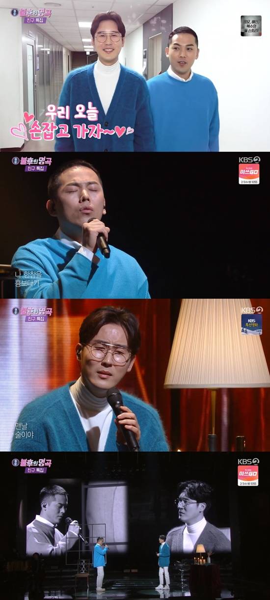 이날 '불후'는 친구 특집으로 꾸며진 가운데, 김용진과 신유를 비롯해 김용임·한혜진, 이봉근·안예은, 하은·지플랫, 슬리피·딘딘이 출연해 무대를 꾸몄다.