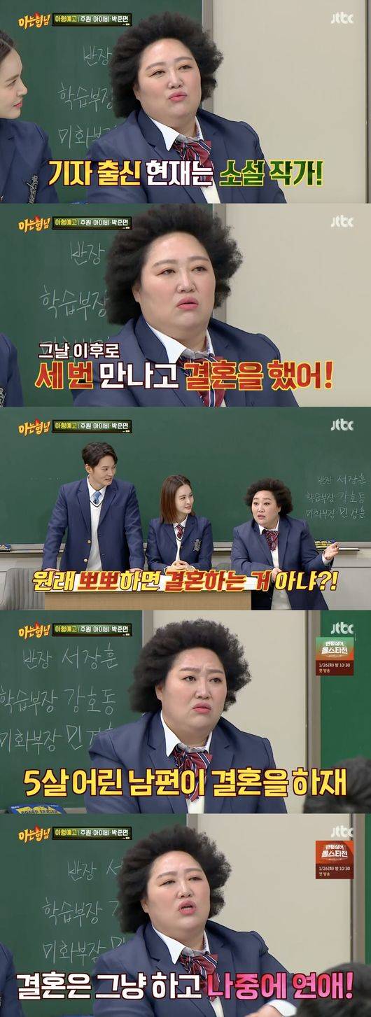 '아는형님' 박준면 "5살 연하 남편과 세 번 만나고 결혼..인터뷰하고 뽀뽀"