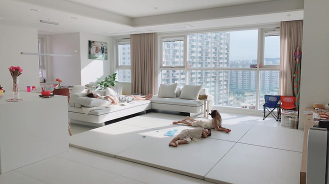 소이현은 23일 자신의 SNS에 "뒹구르르"라는 글과 함께 소파에 누운 남편 인교진과 거실 매트 위에 누운 두 딸이 나란히 TV를 보고 있는 평화로운 모습을 카메라에 담았다.