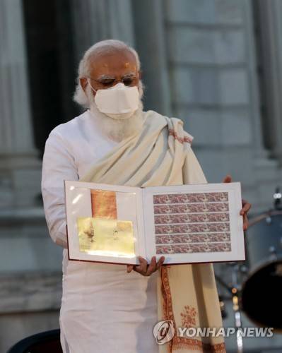 epa08959742 Indian Prime Minister Narendra Modi unveils a new postal stump about Subhas Bose at Victoria Memorial during a celebration of Subhas Bose's 125th birth anniversary in Kolkata Eastern India 23 January 2021. Prime Minister visits in Kolkata to mark the birth anniversary of Netaji Subhas Chandra Bose, while the day observed as 'Parakram Diwas'. Subhas Bose was an Indian revolutionary figrue known for his rule in the independence movement against British rule of India. EPA/PIYAL ADHIKARY