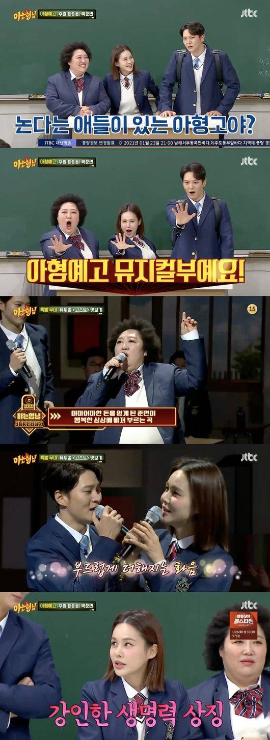 23일 오후 방송된 JTBC '아는 형님'에는 뮤지컬 '고스트'에서 명품 연기를 펼치고 있는 주원, 아이비, 박준면이 전학생으로 출연했다.