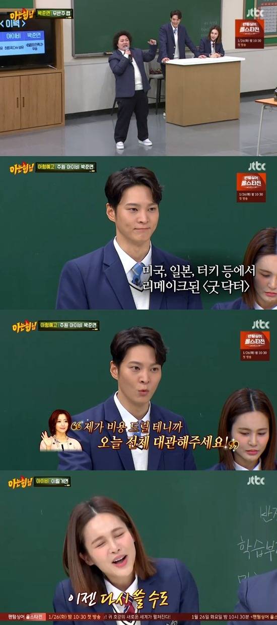 23일 방송된 JTBC '아는 형님'에서는 뮤지컬 '고스트'의 주연 배우 주원, 아이비, 박준면이 전학생으로 출연했다.