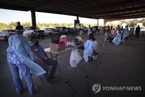 FILE - In this Jan. 21, 2021 file photo farm workers receive the Pfizer-BioNTech COVID-19 vaccine at Tudor Ranch in Mecca, Calif. Five weeks into its vaccination program, California still doesn't have nearly the supply to meet demand and there's growing angst among residents over the difficulty to even get in line for a shot. Social media is awash with people seeking or giving tips on how to maneuver through the system. (AP Photo/Jae C. Hong, File) JAN. 21, 2021 FILE PHOTO