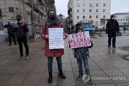 Protest in support of Russian opposition leader Alexei Navalny in Warsaw