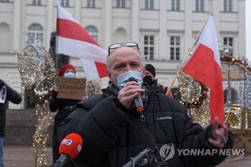 epa08959882 People protest in solidarity with arrested Russian opposition leader and blogger Alexei Navalny in Warsaw, Poland, 23 January 2021. Navalny was detained after his arrival to Moscow from Germany on 17 January 2021. A Moscow judge on 18 January ruled that he will remain in custody for 30 days following his airport arrest. Navalny urged Russians to take to the streets to protest. EPA/MATEUSZ MAREK POLAND OUT