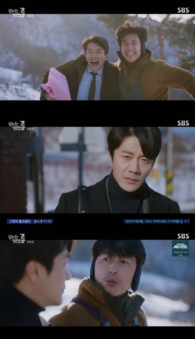23일 밤 방송된 SBS 금토드라마 '날아라 개천용'(극본 박상규·연출 곽정환) 마지막회에서는 박태용(권상우), 박삼수(정우성), 이유경(김주헌)이 승운학원 비리를 추적하는 모습이 그려졌다.
