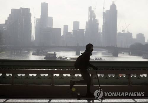 A scooter rider travels over Westminster Bridge in London, Saturday, Jan. 23, 2021 during England's third national lockdown since the coronavirus outbreak began. The U.K. is under an indefinite national lockdown to curb the spread of the new variant, with nonessential shops, gyms and hairdressers closed, and people being told to stay at home. (AP Photo/Kirsty Wigglesworth)