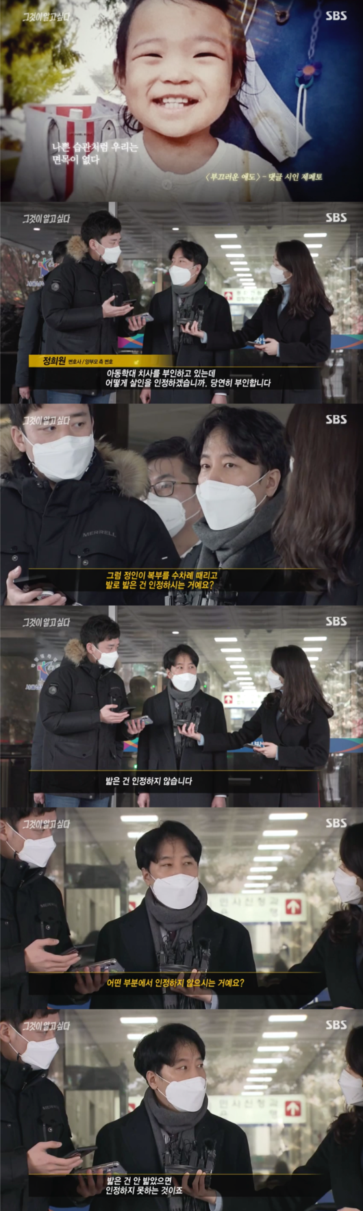 23일 방송된 SBS ‘그것이 알고 싶다’에서 김상중은 “지난 방송 이후 검찰에서 연락이 와 약속한 대로 실험 내용을 공유했다”며 최근 열린 정인이 양모 재판 현장을 공개했다.