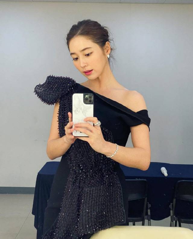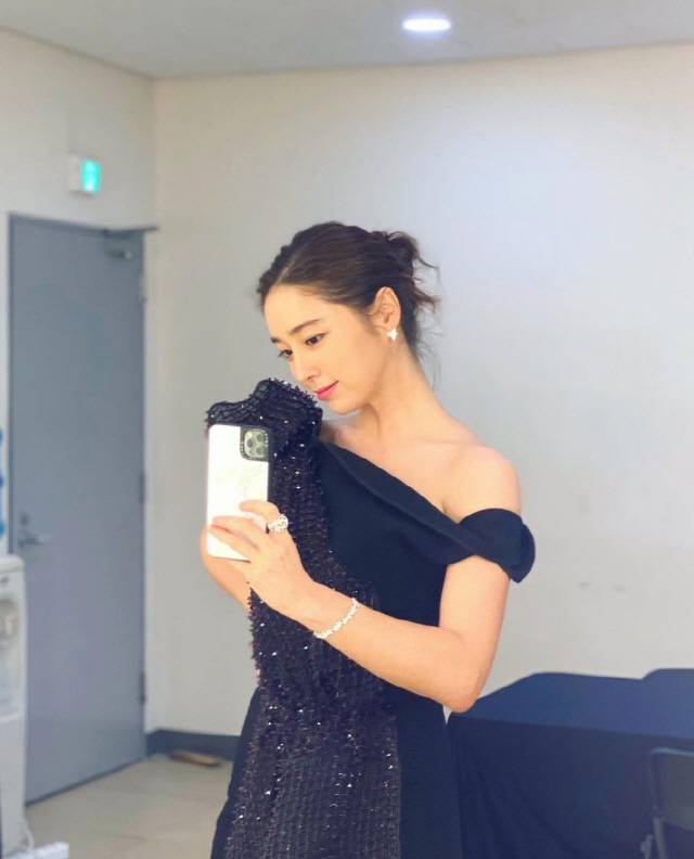 이어 대기실에서 셀카를 촬영하며 아름다운 모습을 담고 있는 이민정.