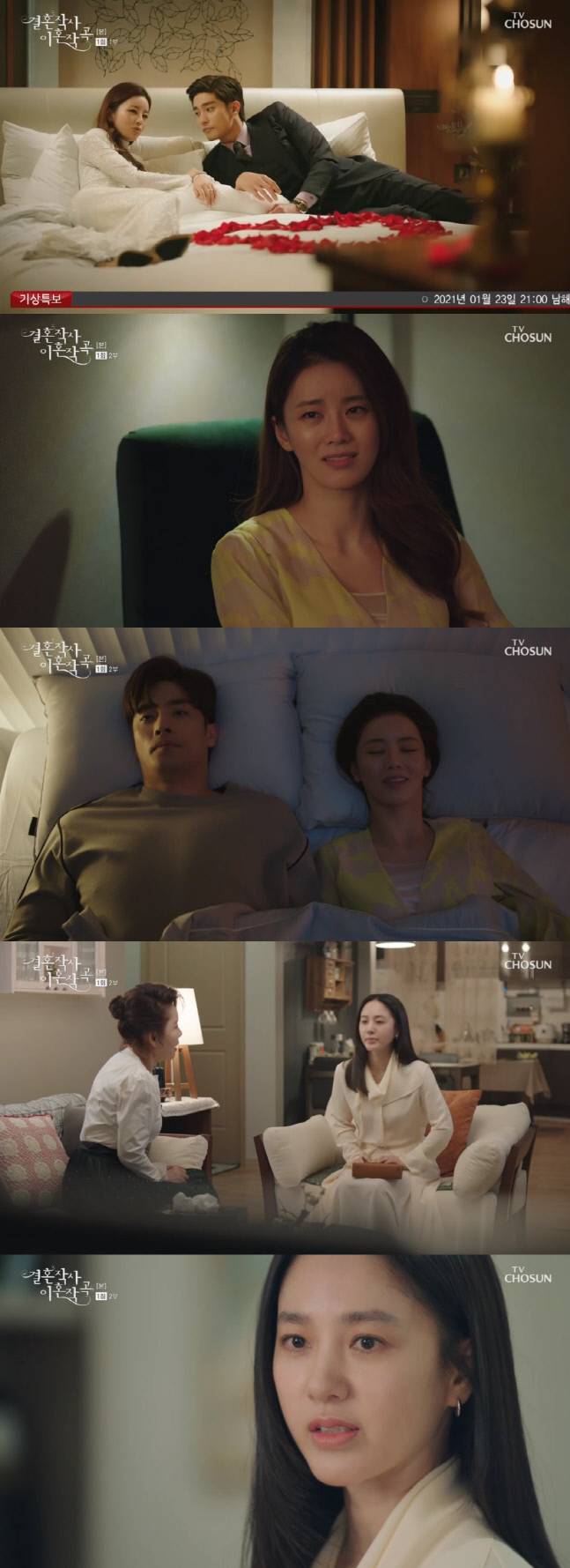 23일 방송된 TV조선 새 주말극 ‘결혼작사 이혼작곡’(이하 ‘결사곡’)에서는 이혼 위기에 처한 이시은(전수경 분), 박해륜(전노민 분)의 모습이 그려졌다.