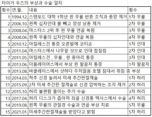 [골프상식백과사전 252] 타이거 우즈 수술 일지