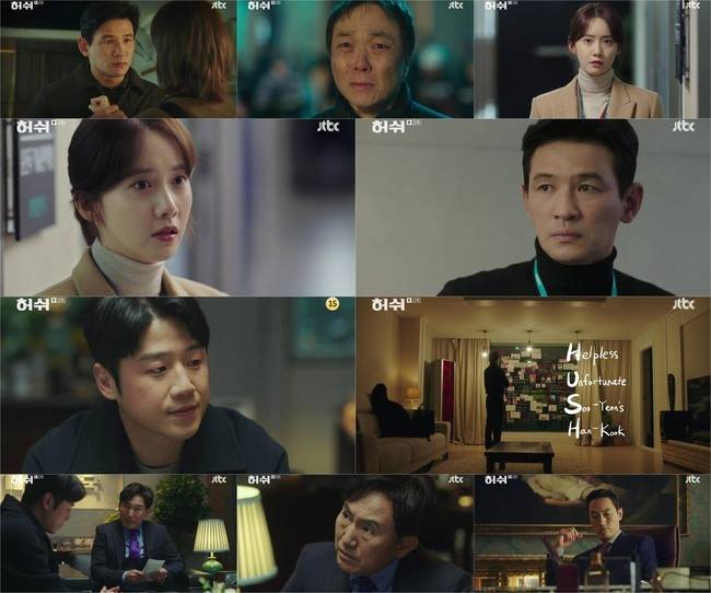 1월 23일 방송된 JTBC 금토드라마 ‘허쉬’(연출 최규식, 극본 김정민, 제작 키이스트·JTBC 스튜디오) 12회에서는 한준혁(황정민 분)과 이지수(임윤아 분) 사이의 숨은 이야기가 공개됐다. 인턴 오수연(경수진 분) 죽음에 대한 의심을 품고 15층 입성을 계획한 한준혁과 알고도 모른 척한 이지수, 진실을 밝히기 위해 오히려 ‘침묵’할 수밖에 없는 두 사람의 눈맞춤은 뭉클함을 안겼다.