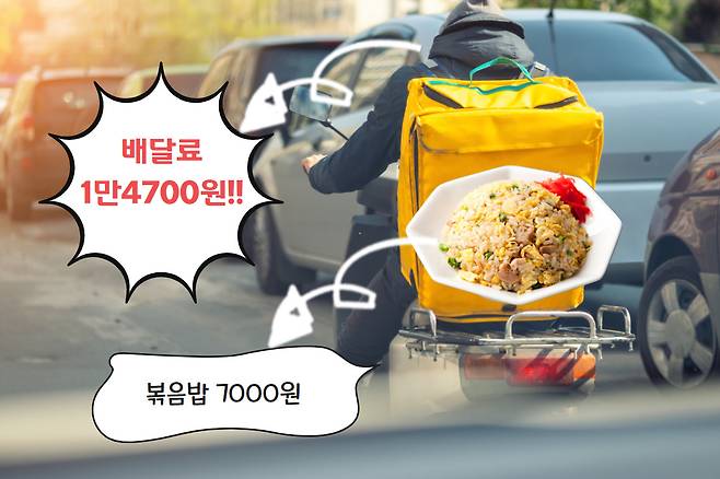 배달 라이더 관련 커뮤니티에는 "볶음밥 7000원, 이동거리 2.5㎞를 배달하는데 배달비가 1만4700원으로 책정됐다"는 사례 등이 공유됐다.