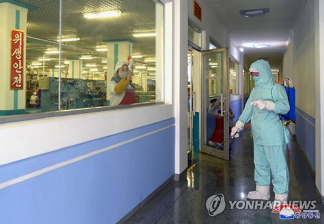 (평양 조선중앙통신=연합뉴스) 북한 평양치과위생용품공장이 신종 코로나바이러스 감염증(코로나19) 방역 작업을 강화해나가고 있다고 조선중앙통신이 24일 보도했다. 2021.1.24