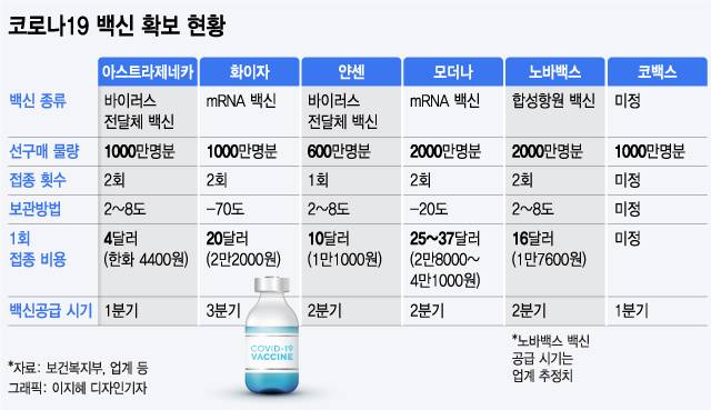 정부는 코백스 초도물량을 포함해 아스트라제네카, 얀센, 화이자, 모더나 등 개별 제약사와 백신 구매 계약을 체결해 총 5600만명 분을 확보했다. 또 노바백스와는 2000만명분 구매계약을 추가로 추진 중이다.