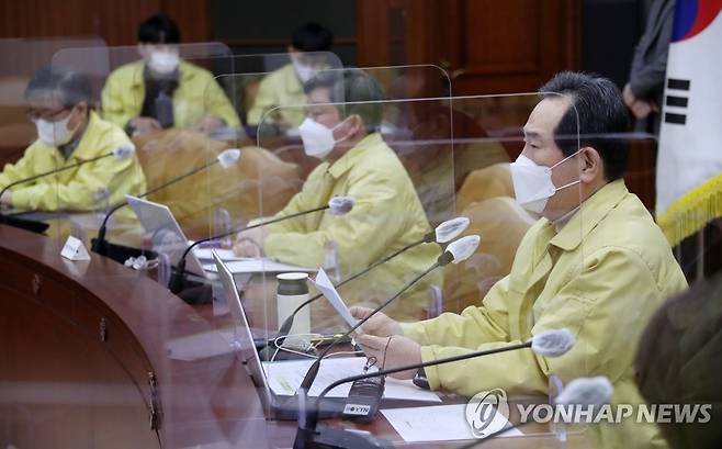 (서울=연합뉴스) 김승두 기자 = 정세균 국무총리가 24일 오후 정부서울청사에서 열린 신종 코로나바이러스 감염증(코로나19) 대응 중앙재난안전대책본부(중대본) 회의에서 발언하고 있다. 2021.1.24