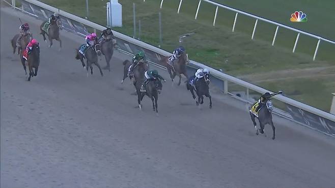 (서울=연합뉴스) 한국마사회 소속 경주마 닉스고(Knicks Go)가 24일 미국 플로리다주 핼런데일비치의 걸프스트림 경마장에서 열린 페가수스 월드컵에서 우승을 차지했다.