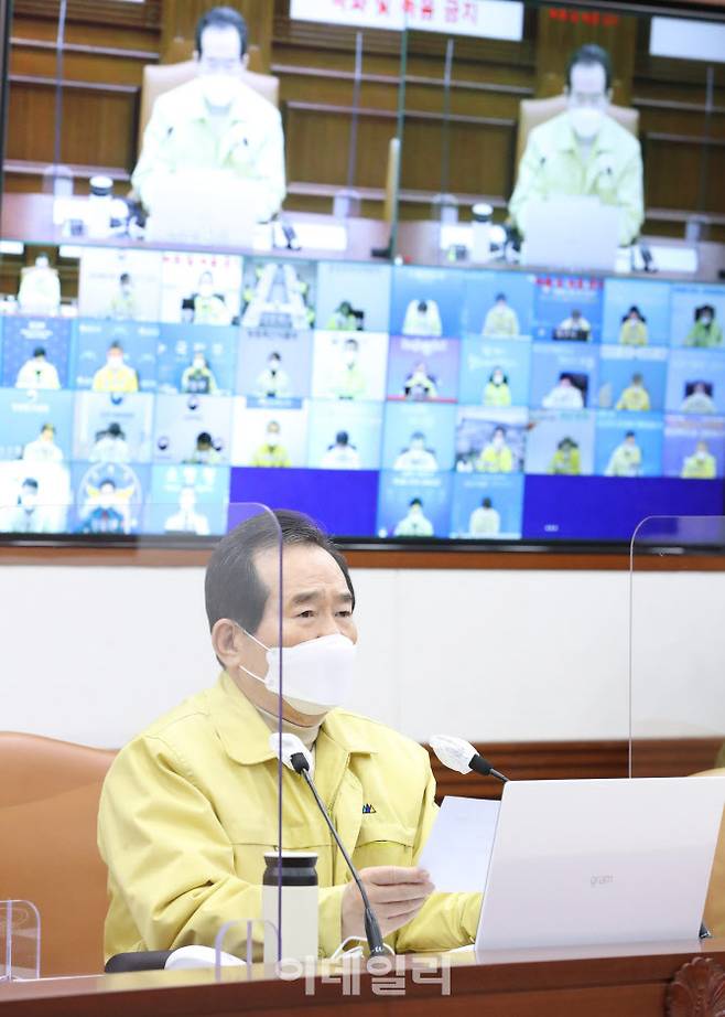 [이데일리 이영훈 기자] 정세균 국무총리가 24일 오후 서울 종로구 정부서울청사에서 열린 코로나19 대응 중앙재난안전대책본부 회의를 주재하고 있다.