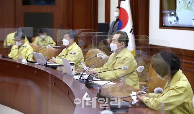 [이데일리 이영훈 기자] 정세균 국무총리가 24일 오후 서울 종로구 정부서울청사에서 열린 코로나19 대응 중앙재난안전대책본부 회의를 주재하고 있다.