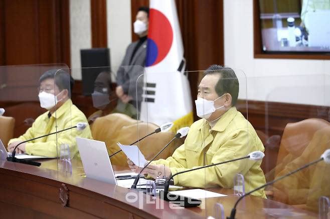 [이데일리 이영훈 기자] 정세균 국무총리가 24일 오후 서울 종로구 정부서울청사에서 열린 코로나19 대응 중앙재난안전대책본부 회의를 주재하고 있다.