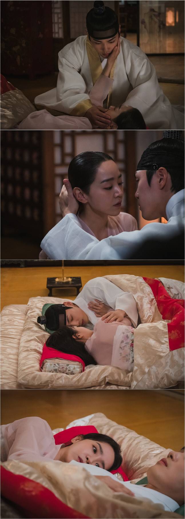 그런 가운데 공개된 사진 속 ‘노타치’ 커플 김소용과 철종의 낮과 밤 다른 풍경이 시선을 사로잡는다. 거센 입덕부정기를 겪고 있는 두 사람, 서로를 향한 달달한 눈빛과 애틋한 손길이 진심을 전하는 듯하다. 닿을 듯 말 듯 입맞춤 1초 전은 가슴을 두근거리게 만든다. 이어진 사진 속, 하룻밤 사이 로맨틱 무드에서 급변한 반전 분위기도 흥미롭다. 자신의 눈앞에 있는 철종의 모습에 당황한 김소용. 이 상황을 모른 채 곤히 잠든 철종의 모습이 궁금증을 더한다.