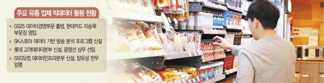 편의점 뿐만 아니라 대형마트, 홈쇼핑 등 유통가 전반에 빅데이터 활용이 본격화되고 있다. T커머스 업체 SK스토아는 지난해 11월 데이터를 기반으로 하는 방송 분석 프로그램을 선보였다. 방송 연출과 판매, 편성과 상품, 시청과 외부 요인 관계 등을 데이터로 분석해 판매 전략을 짠다. 롯데홈쇼핑은 이미 기상 데이터 등 빅데이터 기반의 방송 편성으로 매출 상승 효과를 내고 있다. 롯데와 신세계는 데이터 본부를 신설하고 전문가를 영입하며 데이터 활용 준비에 나섰다. 롯데는 고객데이터책임자(CDO) 자리를 만들고 롯데정보통신 출신의 윤영선 상무를 앉혔고, SSG닷컴은 데이터인프라본부를 신설하고 인공지능(AI) 전문가인 장유성 전무를 본부장으로 임명했다.