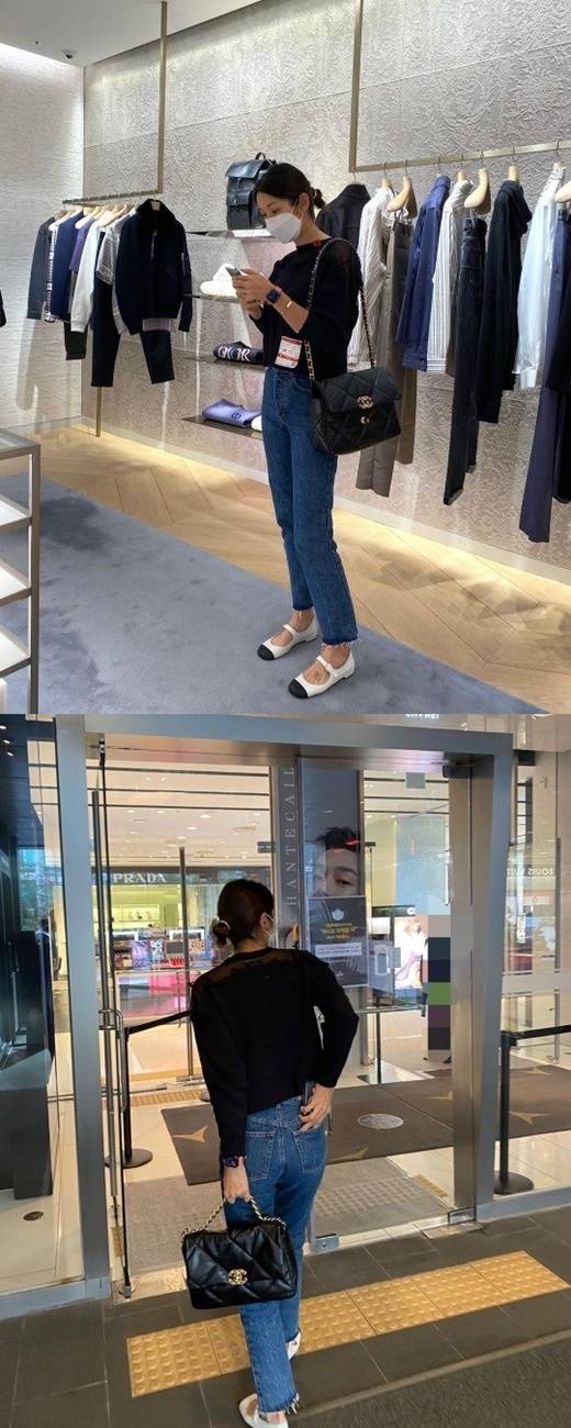 공개된 사진 속 김빈우는 명품 가방을 메고 쇼핑몰에서 쇼핑에 한창이다. 캐주얼한 청바지와 티를 매치해 세련된 매력을 더하고 있다.