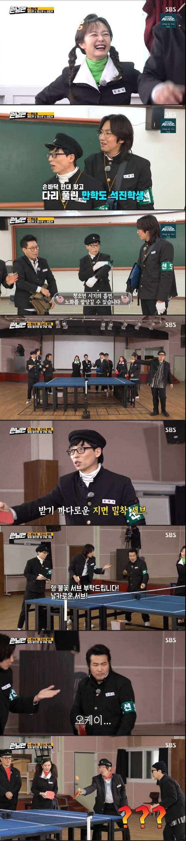 이날 신규진은 학생주임으로 등장해 멤버들의 복장 검사를 진행했다. 선도부원 이광수는 긴 머리를 지적당했다. 그러자 그는 "선생님이 잘라주시면 자를 의향이 있다"라고 고백해 눈길을 끌었다.