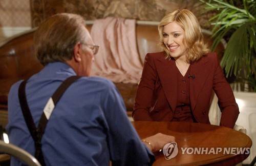 epa08961626 (FILE) - A handout photo dated 30 September 2002 and made available by US broadcaster Cable News Network (CNN) shows tv host Larry King (L) interviewing US singer Madonna (R) during a taping of CNN's 'Larry King Live' at the Four Seasons Hotel in Beverly Hills, California, USA (reissued 24 January 2021). US channel CNN reported that King has passed away at the age of 87 at Cedars-Sinai Medical Center in Los Angeles, California, on 23 January 2021, after having been hospitalized with Covid-19, citing his son Chnace, who confirmed his father's death. King hosted the 'Larry King Live' on CNN for over 25 years, interviewing international celebrities before he retired in 2010 after recording more than 6,000 episodes of the show, CNN reported. EPA/CHRIS PIZZELLO/CNN/HANDOUT HANDOUT HANDOUT EDITORIAL USE ONLY/NO SALES *** Local Caption *** 99326328