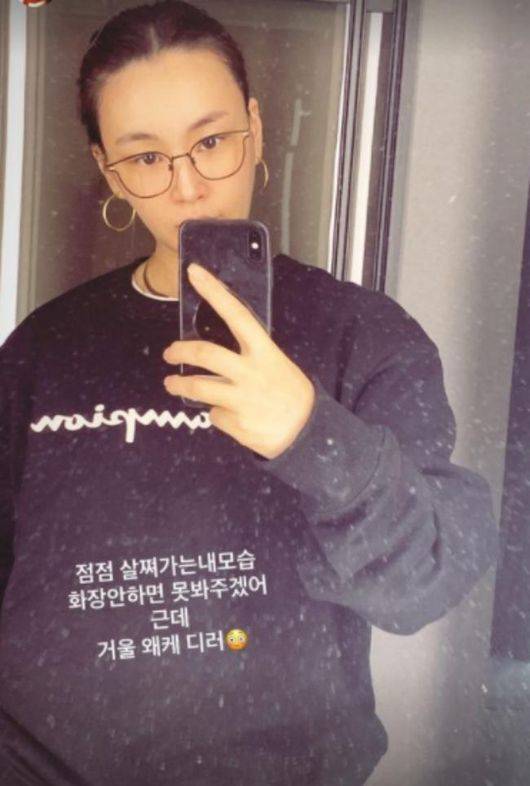 배윤정은 24일 오후 자신의 SNS에 “점점 살쪄가는 내 모습. 화장 안 하면 못봐주겠어. 근데 거울 왜 이렇게 더러워”라는 글과 함께 사진을 게재했다.