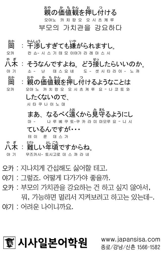 [시사일본어학원의 초단기 일본어 회화] 부모의 가치관을 강요하다