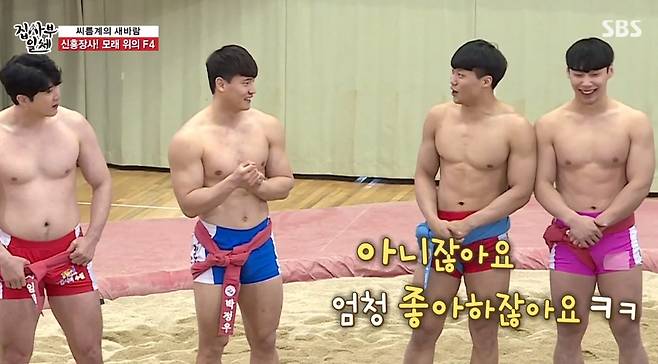 24일 방송된 SBS '집사부일체'에선 모래 위의 F4 박정우 노범수 허선행 임태혁이 새 사부로 출연해 모래판 라이프를 공개했다.