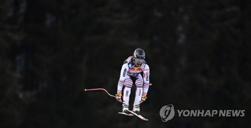 epa08961737 Daniel Hemetsberger of Austria speeds down the slope during the Men's Downhill race at the FIS Alpine Skiing World Cup in Kitzbuehel, Austria, 24 January 2021. EPA/CHRISTIAN BRUNA