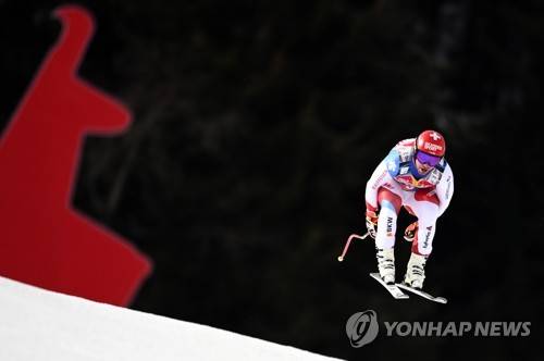 epaselect epa08961674 Beat Feuz of Switzerland speeds down the slope during the Men's Downhill race at the FIS Alpine Skiing World Cup in Kitzbuehel, Austria, 24 January 2021. EPA/CHRISTIAN BRUNA