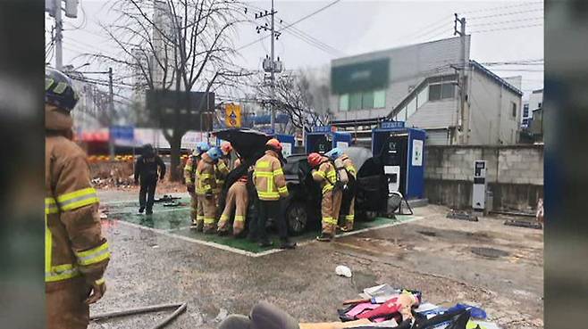 어제(23일) 오후 4시 10분쯤 대구 달서구 전기차 충전소에서 충전 중이던 코나 차량에서 불이 났습니다.