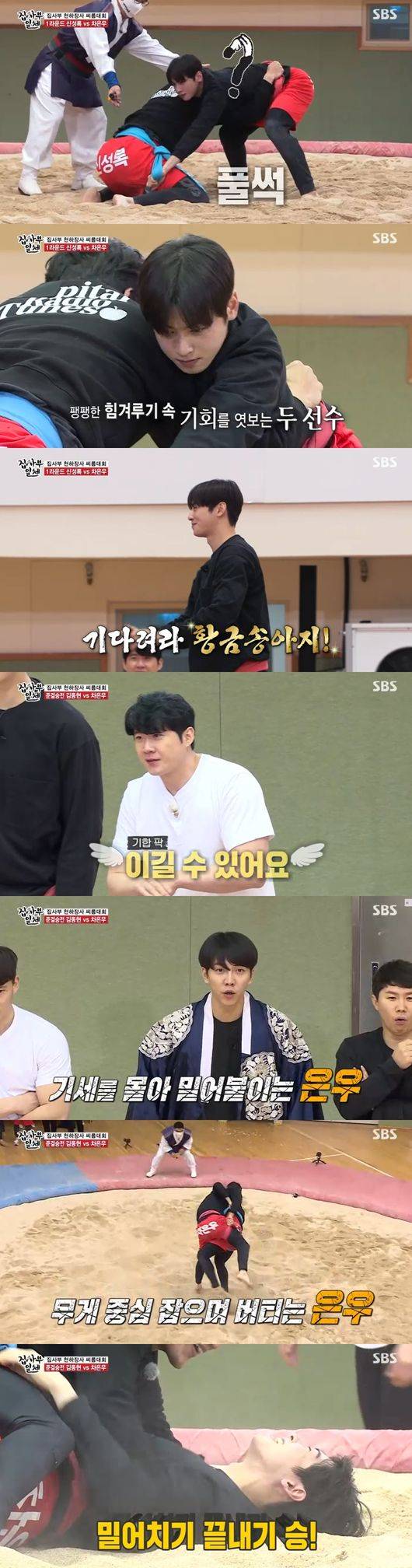 이날 멤버들이 씨름판에 모두 모였다. 이어 씨름 사부들이 예상한 순위를 언급, 멤버들은 "은우는 악바리, 만능이라 1등 예상한다"면서 "어리버리함이 약간 있기도 하다"고 말해 웃음을 안겼다.
