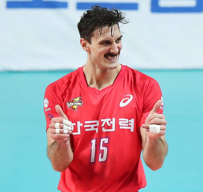 이날 카일 러셀(사진)과 박철우는 나란히 20득점씩을 기록하면서 팀을 이끌었다. 1세트가 분수령이었다. 우리카드 알렉산드리 페헤이라(등록명 알렉스)가 세트 중반 한국전력의 포지션 폴트를 주장했고 신영철 우리카드 감독도 항의했으나 받아들여지지 않았다. 한국전력은 어수선한 분위기가 이어지던 16-16에서 연속 4득점을 올리며 흐름을 가져왔다. 1세트를 차지한 한국전력은 고삐를 더욱 바짝 조여 우리카드를 몰아붙였다. 서브와 블로킹, 수비에서 우위를 자랑한 한국전력은 결국 한 세트도 빼앗기지 않고 경기를 마무리했다. 한국전력은 서브 득점(7-2)과 블로킹 득점(9-2)에서 모두 우리카드를 앞질렀다.