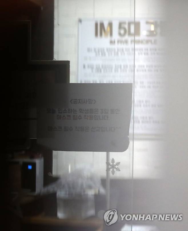 (대전=연합뉴스) 김준범 기자 = 24일 오후 신종 코로나바이러스 감염증(코로나19) 확진자가 무더기로 나온 대전시 중구 대흥동 IEM국제학교에 안내문이 붙어 있다. 대전시에 따르면 이날 IM선교회에서 운영하는 IEM국제학교 학생인 전남 순천 234번과 경북 포항 389번이 확진된 데 이어 대전에서 학생과 교직원 125명(대전 961∼1천85번)이 더 확진 판정을 받았다. 2021.1.24