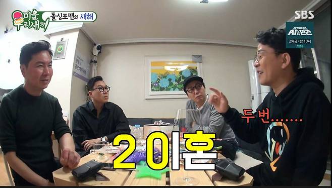 2020년 새해 첫날, 임원희 집에 탁재훈 이상민 김준호 등 돌싱 4명이 모였다. 앞에 분위기와 사뭇 다른 처진 분위기.