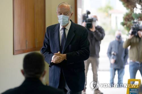 epa08962180 Portuguese President and presidential candidate Marcelo Rebelo de Sousa (2ndL), before casting his vote in Celorico de Basto, northern Portugal, 24 January 2021. According to reports, COVID-19 fatalities in Portugal, which now stand over 10,000, could play a major role in low voter turnout in the 2021 presidential elections. Portugal is currently under a second national lockdown, to quell the widespread of COVID-19. EPA/HUGO DELGADO