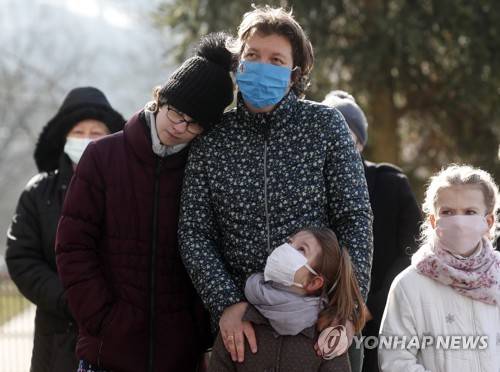 People, wearing masks for protection against the COVID-19 infection, stand outdoors during an outdoor Lutheran Church religious service in Csovar, Hungary, Sunday, Jan. 24, 2021. While Hungary has imposed strict COVID-19 restrictions, including a ban on gatherings of more than 10 people, the government has not limited religious events. The Catholic Church, which represents a majority of Hungarian Christians, holds its masses almost as it did in pre-pandemic times, but other religious communities have sought other solutions to limit exposure to the virus. (AP Photo/Laszlo Balogh)