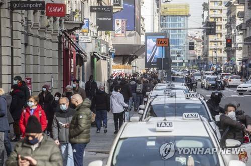 epa08962203 People go about their daily life in the centre of Milan during the second wave of the Covid-19 Coronavirus pandemic, in Italy, 24 January 2021. EPA/ANDREA FASANI