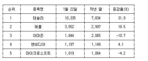 - ☞ '서학개미' 보유한 테슬라 주식 100억달러 넘어