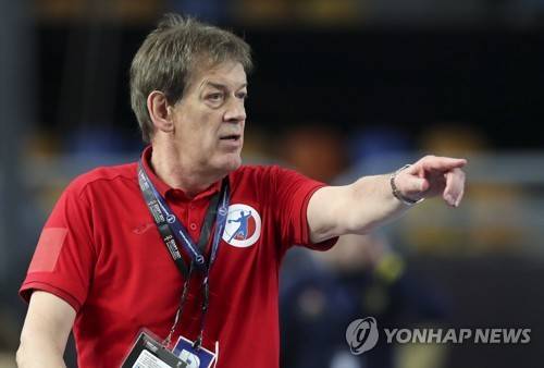 epa08963174 Russia's coach Velemir Petkovic reacts during the Main Round match between Russia and Sweden at the 27th Men's Handball World Championship in Cairo, Egypt, 24 January 2021. EPA/Mohamed Abd El Ghany / POOL