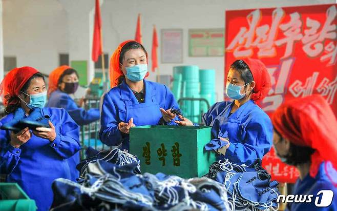 (평양 노동신문=뉴스1) = 북한 노동당 기관지 노동신문은 25일 제8차 당 대회 결정 '관철'로 고조되는 사회 분위기를 전했다. 신문은 "온 나라의 일터와 초소가 끓어번지고 있다"면서 당 대회 결정 관철에 나선 각지 공장과 기업소 등의 노동자들을 조명했다. 사진은 당 대회 결정 관철 운동에 나선 보통강신발공장 노동자들의 모습.