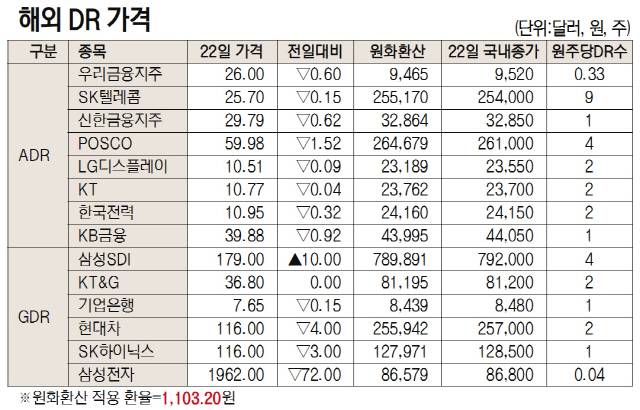 [표]해외 DR 가격(1월 22일)