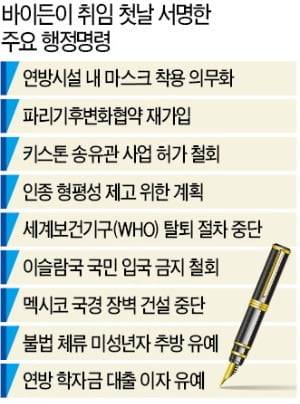 새 정부 출범으로 코로나19 통제에 대한 기대가 커졌습니다. 바이든 대통령은 취임식 후 5시간만에 코로나 관련 행정명령에 서명했습니다. 향후 100일 간 모든 공공청사에서 마스크 착용을 의무화한 겁니다. 다음날엔 비행기로 미국에 입국하는 모든 여행객이 코로나 음성 확인서를 제출해야 하고, 도착 후엔 일정기간 격리돼야 한다고 밝혔습니다.