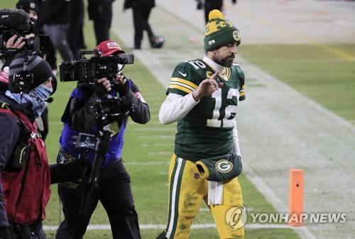 epa08963305 Green Bay Packers quarterback Aaron Rodgers reacts as he leaves the field after losing to the Tampa Bay Buccaneers in their NFL NFC Championship game at Lambeau Field in Green Bay, Wisconsin, USA, 24 January 2021. The Buccaneers will go on to face either the Buffalo Bills or the Kansas City Chiefs in Super Bowl LV in Tampa Bay, Florida on 07 February 2021. EPA/TANNEN MAURY
